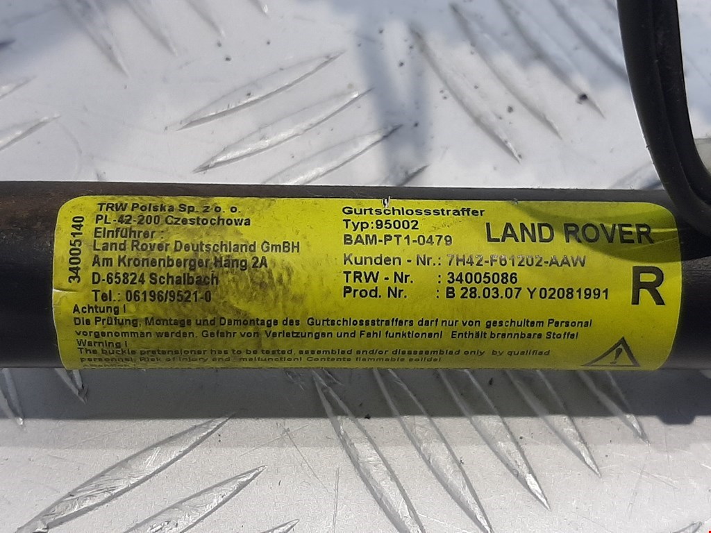 Замок ремня безопасности (преднатяжитель ремня безопасности) Land Rover Range Rover 3 (2001-2012)
